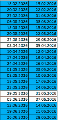 Belegungsplan 2026 (blau=belegt, weiß=frei)