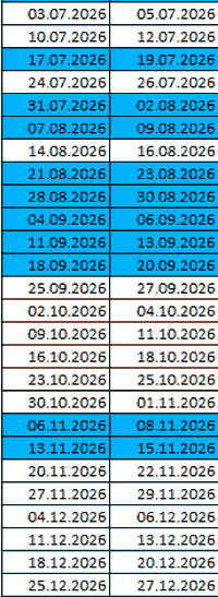 - Ganzjährig in der Regel immer am Wochenende von Freitag bis Sonntag